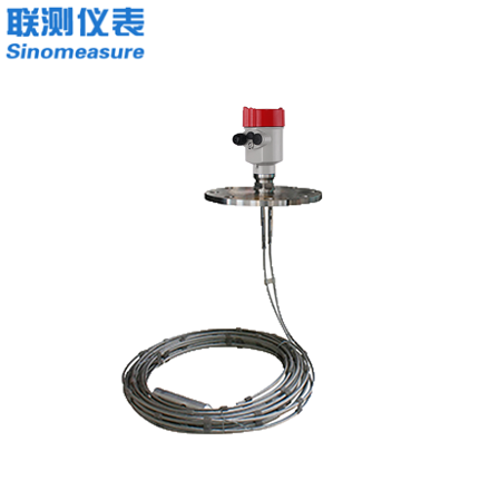 導波雷達發(fā)出的高頻微波脈沖沿著探測組件(鋼纜或鋼棒)傳播, 遇到被測介質(zhì),由于介電常數(shù)突變,引起反射,一部分脈沖能量被反射 回來。發(fā)射脈沖與反射脈沖的時間間隔與被測介質(zhì)的距離成正比。